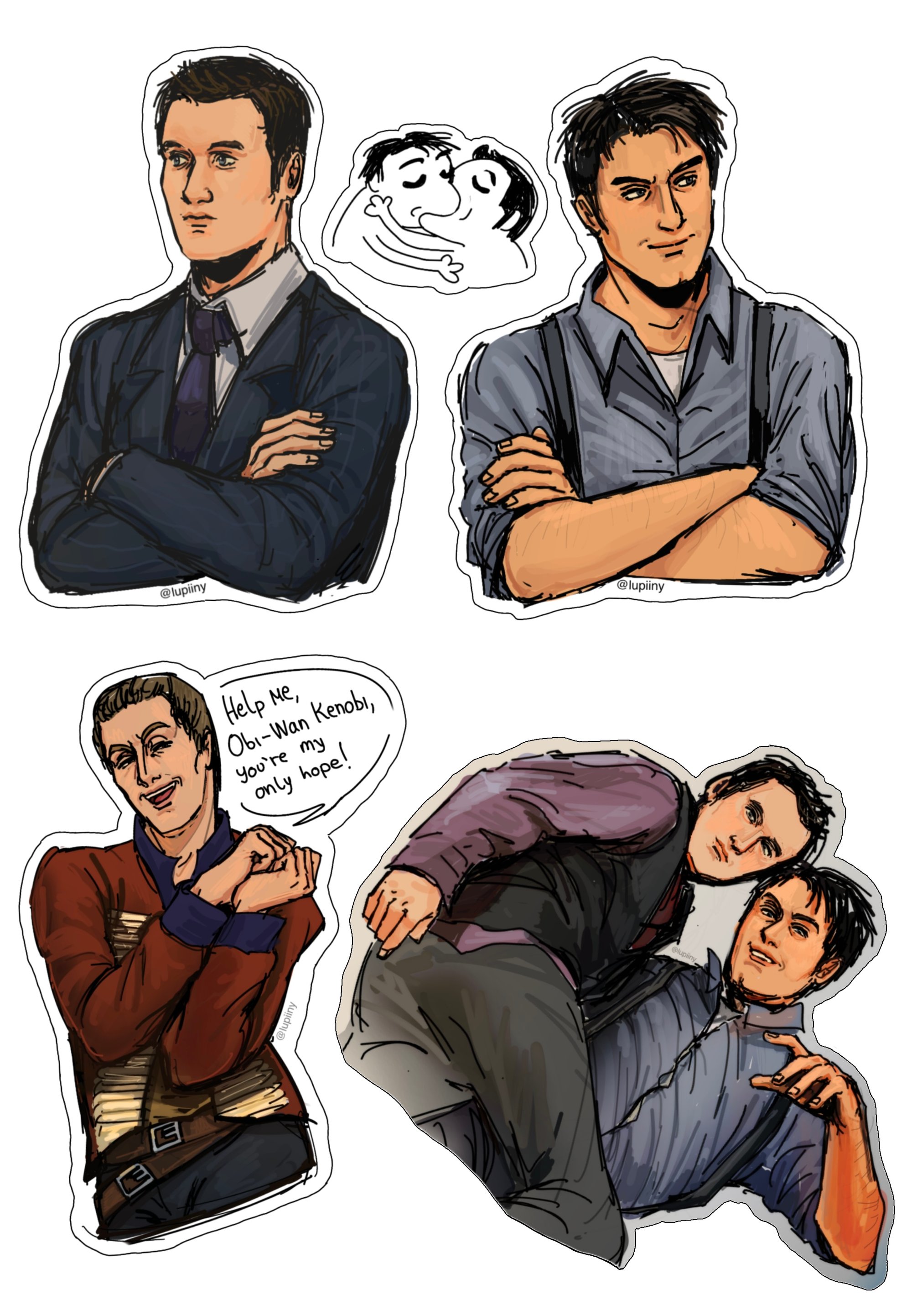 ✧!! sticker size Ianto jones : ~7cm Jack Harkness: ~6,5cm kiss kiss : ~2cm John Hart: ~8,5cm Janto: ~8,5cm